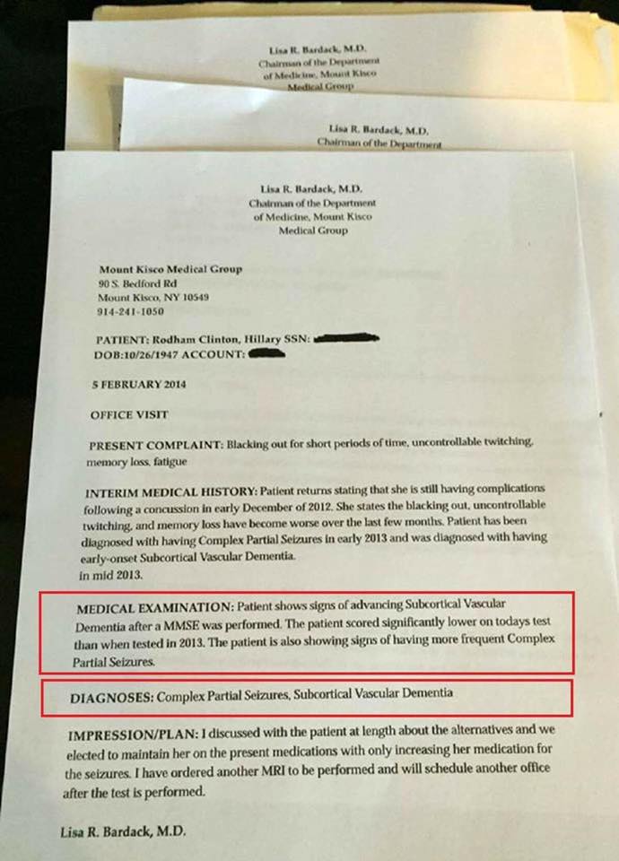 Hillary Clintonin sairaskertomus vuodettiin julkisuuteen äsken ja siitä selvisi, että hän sairastaa dementiaa.